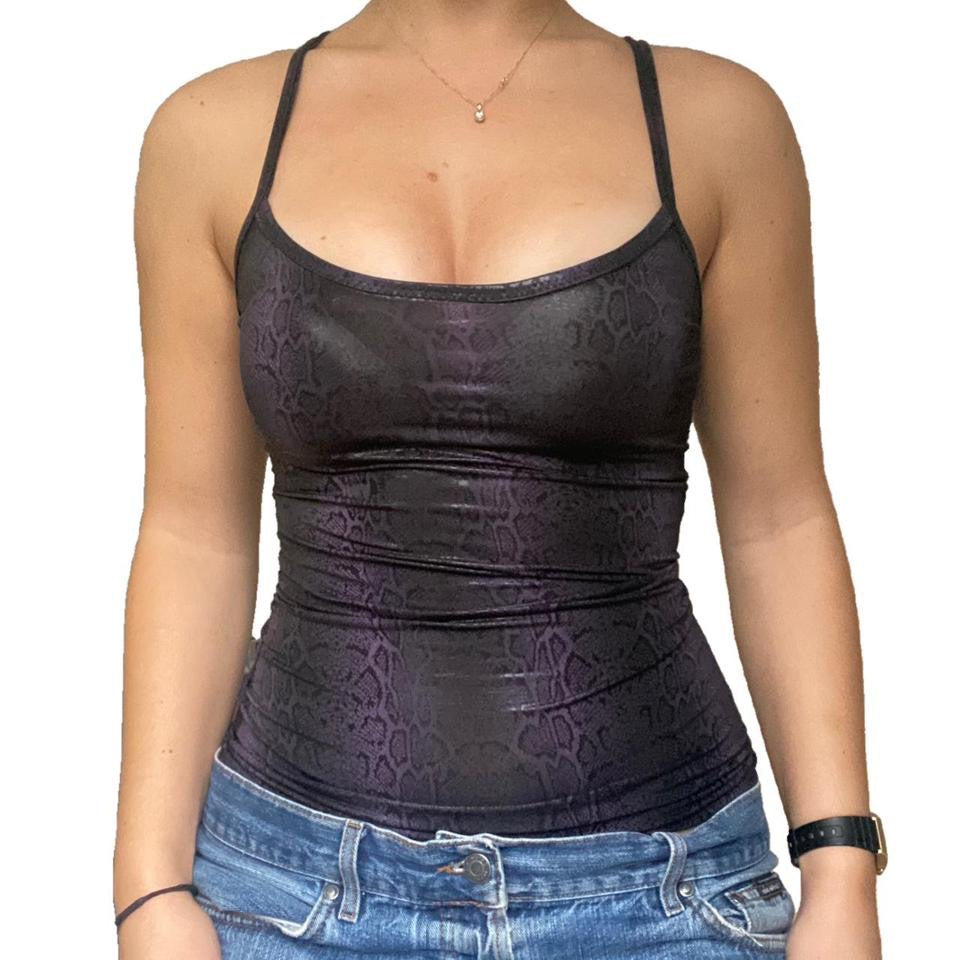 -Made from deadstock fabric in a black and purple snakeskin design (vegan)